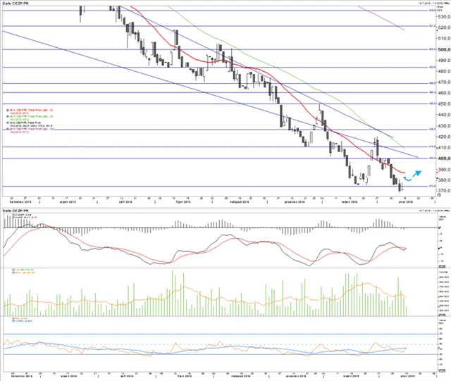 Komerční banka a ČEZ: České blue chips pohledem technické analýzy (16. 2. 2016)