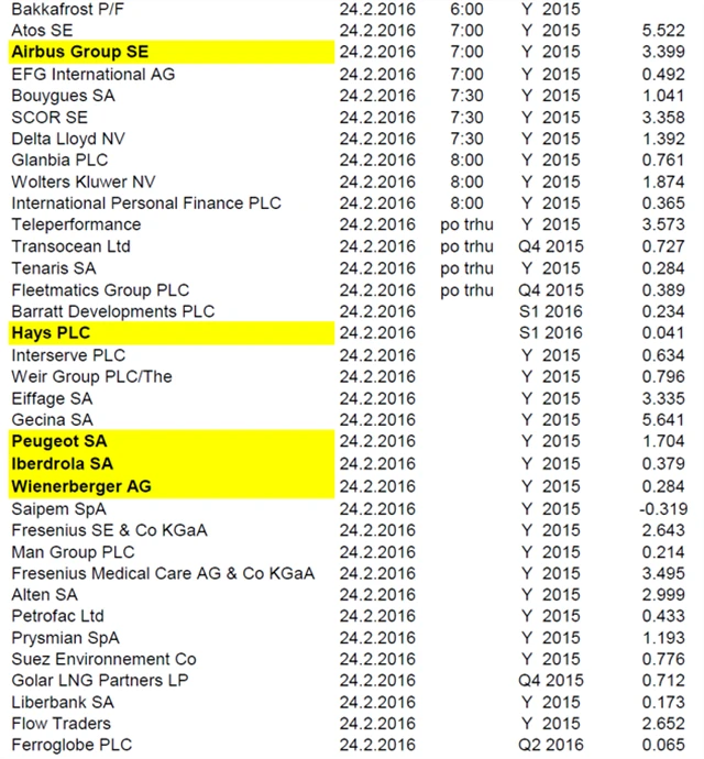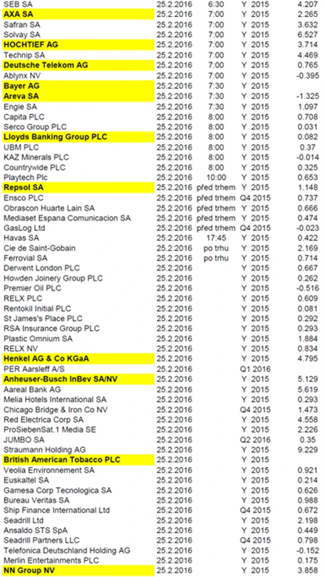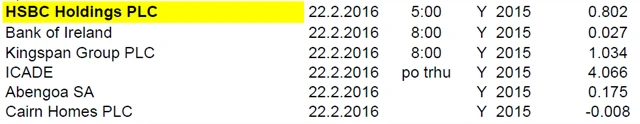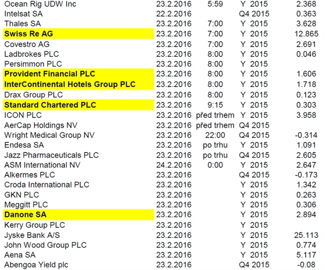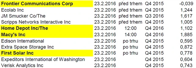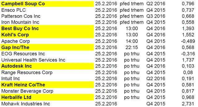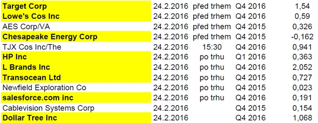 Které světové firmy představí výsledky hospodaření za uplynulý kvartál v týdnu od 22. února a jaké zisky v rámci indexu S&P 500 a od jednotlivých společností očekávají analytici oslovení agenturami Thomson Reuters a Bloomberg?