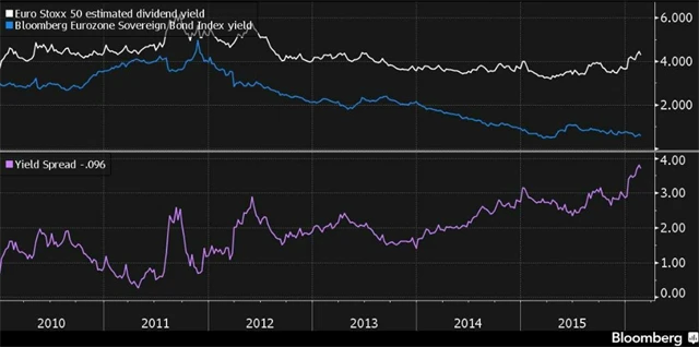 Přestože index EURO STOXX 50 v průběhu února zaznamenal nejsilnější týdenní nárůst od loňského října, z evropských akciových fondů zmizelo podle údajů společnosti EPFR Global ve stejném týdnu 4,2 miliardy eur. Úprk z akcií se děje v rozporu s faktem, že rozdíl mezi dividendovými výnosy a výnosy dluhopisů jsou na historicky nejvyšší úrovni.