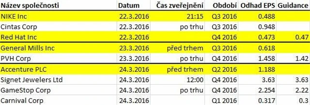 Očekávané výsledky světových firem v týdnu od 21. března (18. 3. 2016)
