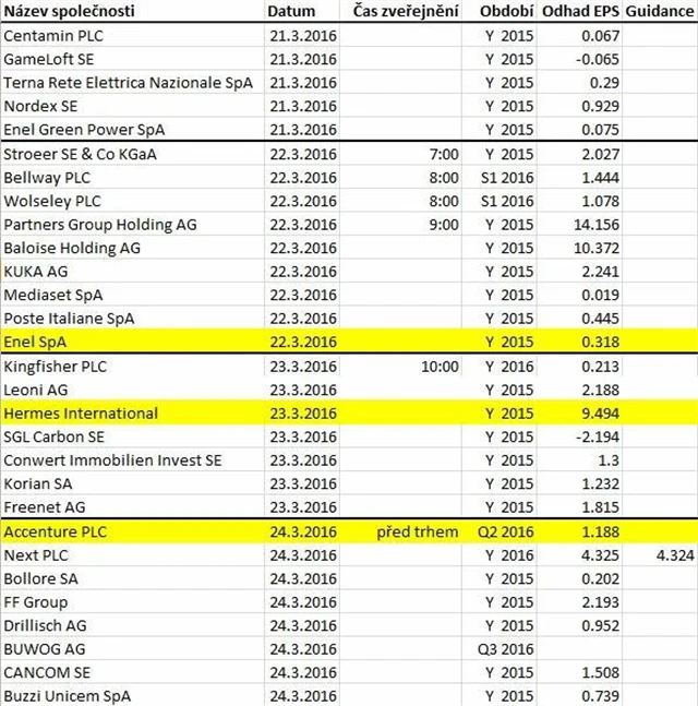 Poznámka: Odhady analytiků jsou aktuální k 17. 3. 2016.