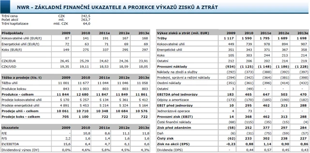 Vnější podmínky na světových trzích s oběma typy uhlí se stále zdají být pro NWR příznivé. Rozsáhlé záplavy v Austrálii na přelomu roku způsobily propad nabídky, zejména koksovatelného uhlí z Austrálie do Asie, a cena vzrostla téměř o 50 procent.