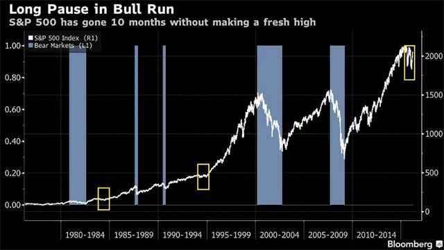 Americký býk je stále u moci, i když jeho vláda již nevypadá tak pevně jako dříve. S&P 500 posunul své historické maximum naposledy před deseti měsíci, a aktuálně si tak v tomto ohledu v rámci býčího trhu vybírá nejdelší pauzu od roku 1995.