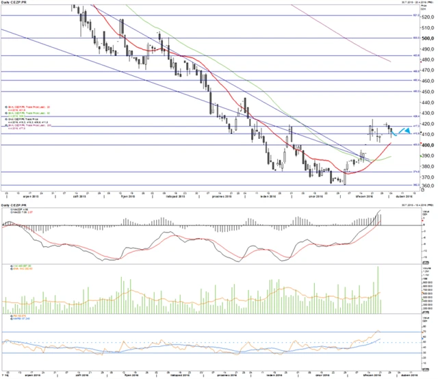 Komerční banka a ČEZ: České blue chips pohledem technické analýzy (5. 4. 2016)