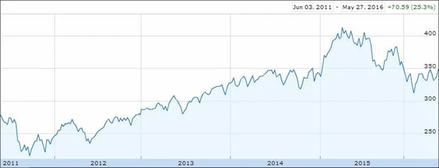 Prognóza Deutsche Bank zatím nevychází, od jejího vydání akcie přidaly asi 3 %), ale lokální maximum nebylo překonáno. Němečtí analytici dokonce předpokládají, že by index mohl v případě nepříznivého vývoje klesnout až k 272 bodům. Vedl by jej k tomu právě zmiňovaný pokles na komoditních trzích a rozšiřování kreditních spreadů.