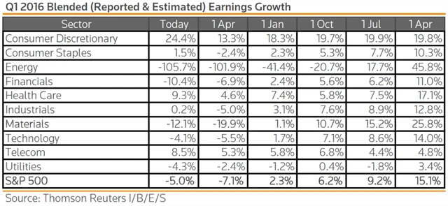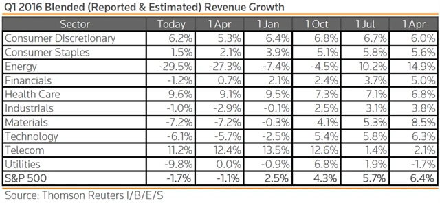 Jak se vyvíjely odhady růstu či poklesu tržeb firem z S&P 500?