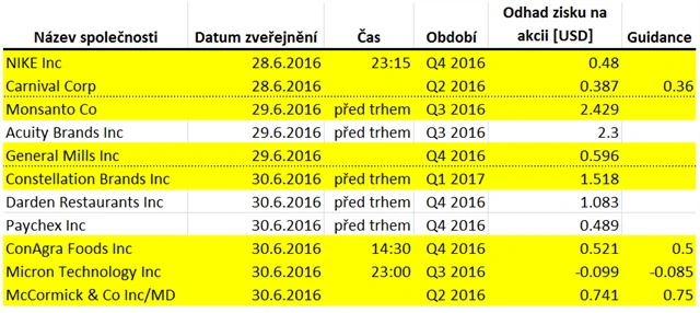 Očekávané výsledky světových firem v týdnu od 27. června (24. 6. 2016)