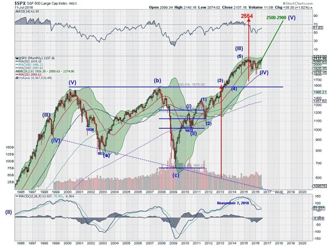 Indikátory momenta jsou podle něj aktuálně také nakloněny dalšímu růstu cen akcií. Vnímá tak jak RSI, tak MACD. "Bollingerovo pásmo se s růstem ceny také otevírá vyšším hodnotám. Vlastně tedy nevidím technickou překážku pro další růst indexu S&P 500," potvrzuje Harmon býčí výhled pro americké akcie. "Nad historickým maximem není prakticky žádná významná rezistence. Dlouhodobá projekce na základě takzvaných Elliottových vln vychází na 2 500 bodů i více. Jistě to nebude přímka vzhůru, ale technicky růstu nic nebrání."