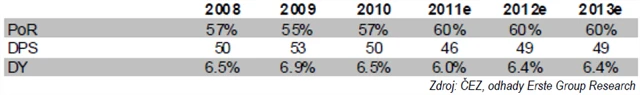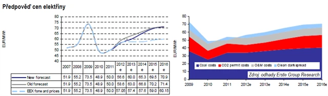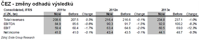 Náš odhad pro léta 2011-12 necháváme téměř nezměněn, ale snižujeme odhad pro rok 2013 kvůli nižším odhadovaným cenám CO2 povolenek a následným nižším cenám energií. Posun dokončení dvou elektráren (ze začátku roku 2013 do roku 2014) dále oddálí růst zisků.