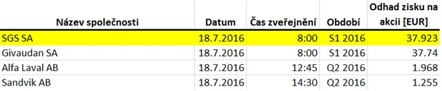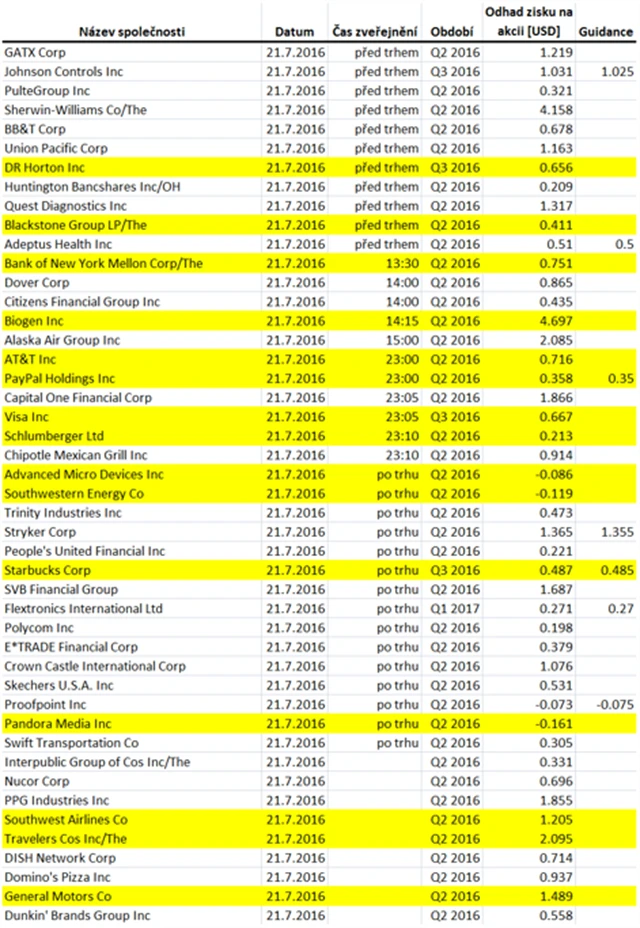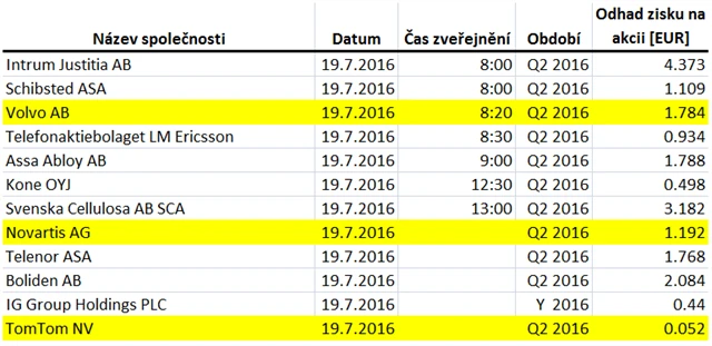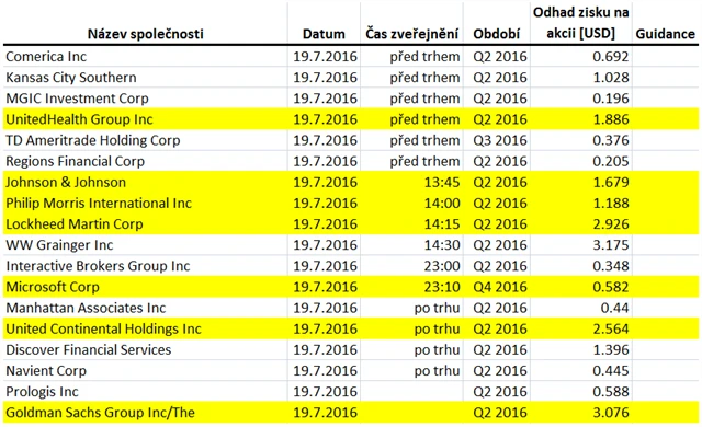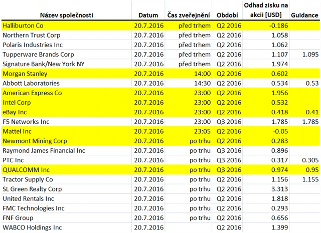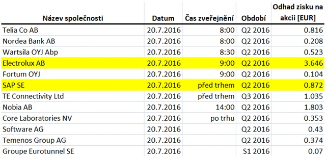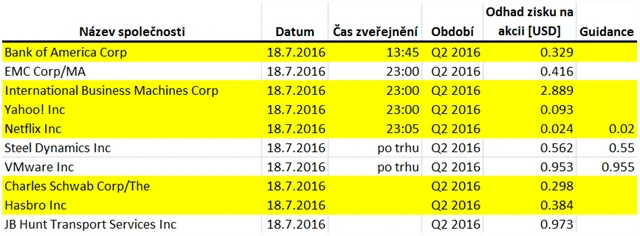 Očekávané výsledky světových firem v týdnu od 18. července (15. 7. 2016)