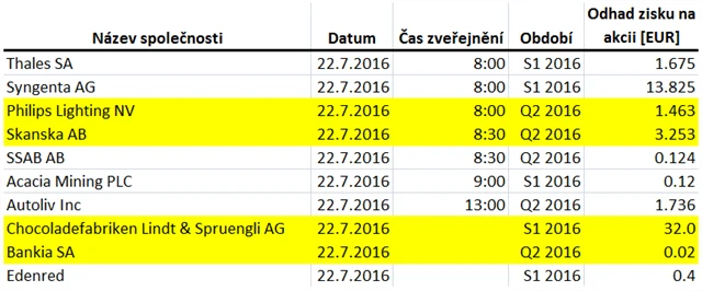Poznámka: Odhady analytiků jsou aktuální k 15. 7. 2016.