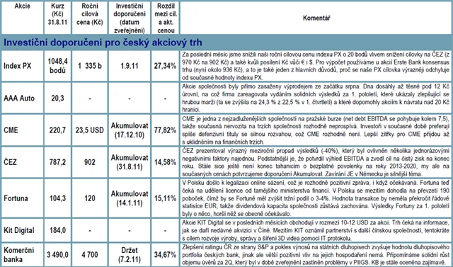 ČS: Zářijová akciová strategie pro české akcie (1. 9. 2011)