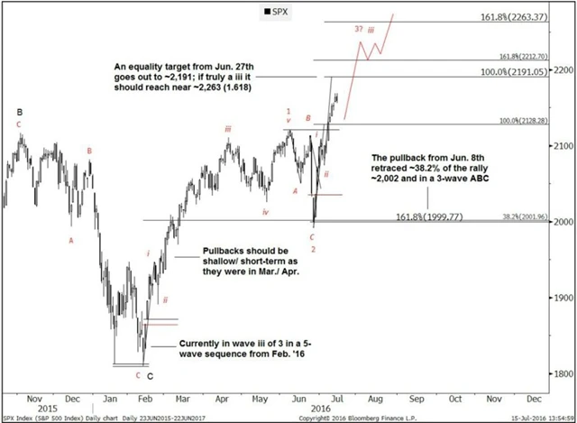 "Pokud bychom šli ještě více nazpátek, pohyb trhu od února je vlastně pátou vlnou v pohybu, který začal již v roce 2010. V tom případě by byl minimální cíl pro pátou vlnu na hodnotě 2 172 bodů, což se již stalo. Rozšířený cíl by ale byl až někde na hodnotách kolem 2 394 až 2 452 bodů," pokračuje Jafariová.