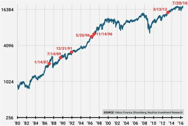 Index Dow ve středu vzrostl podeváté v řadě. To se mu od roku 1980 podařilo přesně posedmé. V předchozích šesti případech Dow v následujících šesti měsících v průměru připsal 10,41 % (nejvíce 22,05 % po 14. lednu 1987, nejméně 4,72 % po Novém roce 1991). Od roku 1900 se to mimochodem stalo potřicáté, v průměru následující půlrok byl ve znamení růstu, a to o 5,96 %.
