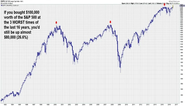 Není bez zajímavosti, že tři významné historické rekordy posledních dvaceti let, tedy ty z let 2000, 20007 a 2015 (současná série maxim je stále ještě "otevřená"), nebyly, jakkoli je to neintuitivní, vyloženě katastrofálními okamžiky pro vstup na trh. Hypotetický investor, který by nakupoval akcie pouze ve třech konkrétních dnech, kdy byl trh na vrcholu, by do současnosti i tak při strategii "kup a drž" shrábl celkový zisk okolo 27 % (bez zahrnutí dividend). Před pár dny na to upozornil analytik Andrew Adams ze společnosti Raymond James.