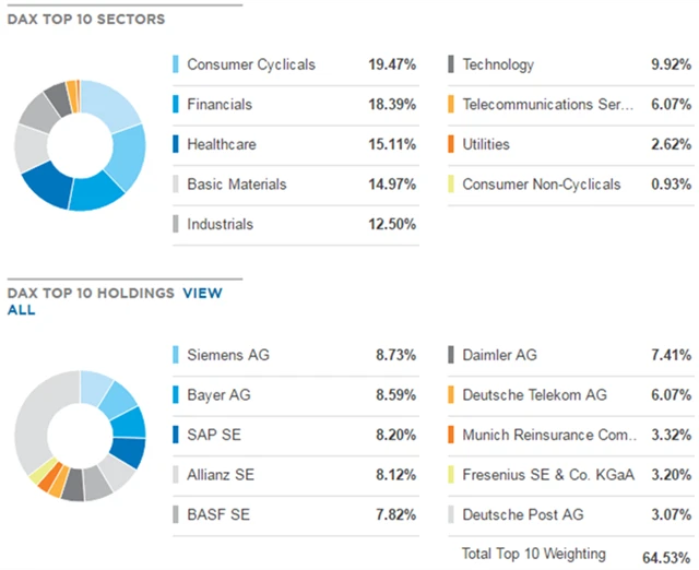 Mezi vysoce výkonné sektory indexu DAX patří automobilový, chemický, spotřební, farmaceutický a zdravotnický sektor. Méně výkonné sektory zahrnují stavební, softwarový a technologický sektor.