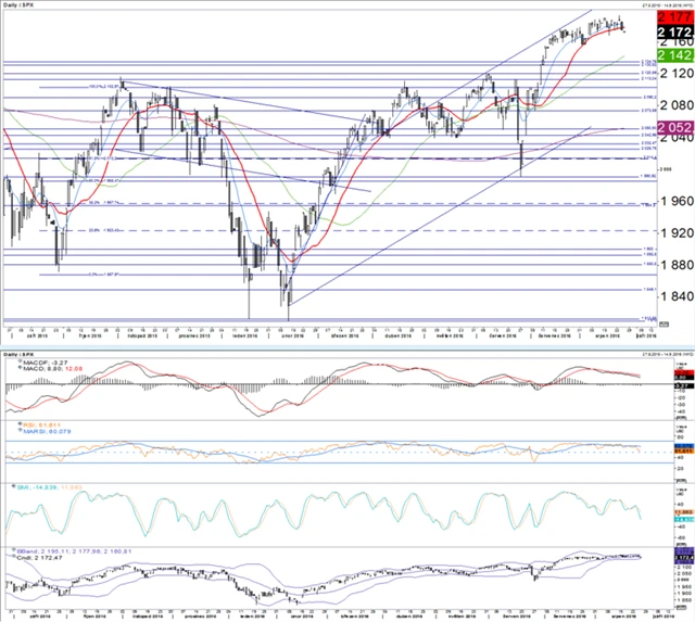 Index S&P 500 se dostal lehce pod 2 175 bodů, tedy spodní hranici pásma 2 175 až 2 195, ve kterém se pohyboval po většinu srpna. Hladina podpory na 2 160 ale v pátek potvrdila svou platnost. Další, a velice silná podpora je v pásmu 2 120 až 2 135, tedy na loňských maximech, směrem vzhůru jsou rezistence na historických rekordech okolo 2 190 a dále na psychologicky zajímavé hladině 2 200.
