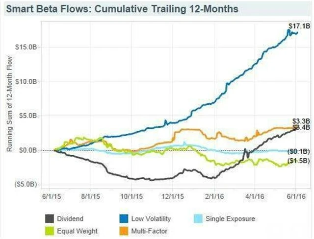 Jak to může dopadnout, když se investoři za každou cenu snaží hledat nějaký nadvýnos, je výborně vidět na takzvaných smart beta fondech. Ty jsou v poslední době poměrně oblíbené, protože se snaží vybírat akciové tituly na základě různých kritérií, což by mělo teoreticky zvýšit jejich výkonnost vůči pasivním indexovým fondům.