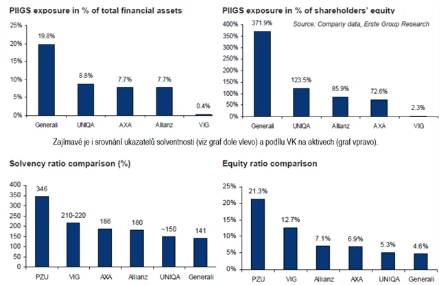 Bližší pohled na finanční výkazy konkurentů VIG odhalí velké rozdíly co se týče kvality rozvah. Podíl vlastního kapitálu a aktiv u VIG dosahuje 12,7 % a ukazatel solventnosti 210-220 %. To znamená, že oba ukazatele jsou jasně lepší než u konkurence v západní Evropě. Co se týče expozice vůči vládním dluhům zemí PIIGS, tak ta v případě VIG dosahuje pouze 0,4 % celkových finančních aktiv.