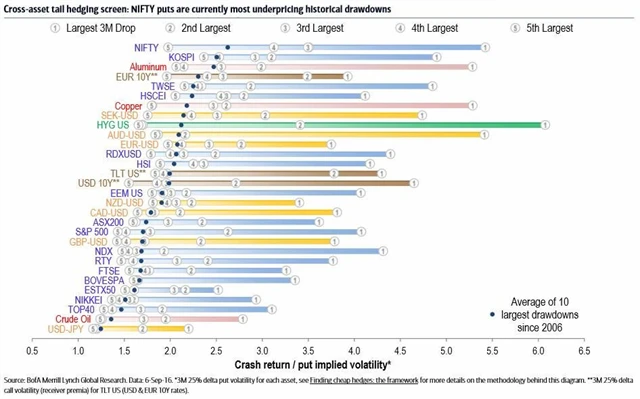 Jason Galazidis, Abhinandan Deb, Anshul Gupta a Benjamin Bowler v aktuální analýze Cross Asset Hedging upozorňují na to, že náklady na zajištění se proti volatilitě jsou extrémně nízké, ačkoli riziko příchodu krizového okamžiku se spíše zvyšuje, než snižuje. Reálně podle nich dokonce hrozí, že se brzy zopakuje scénář z loňského srpna a přelomu loňského a letošního roku, kdy investory vyděsila série slabých makroekonomických údajů z Číny.