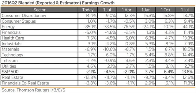 Jak se vyvíjely odhady růstu či poklesu tržeb firem z S&P 500?