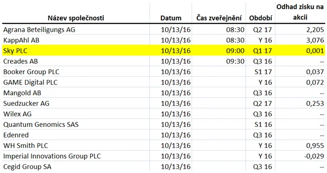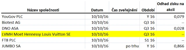Poznámka: Odhady analytiků jsou aktuální k 7. 10. 2016.