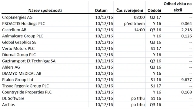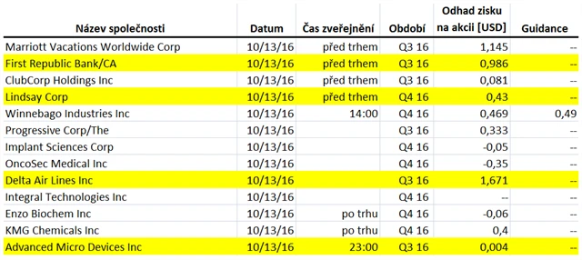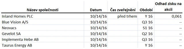 Očekávané výsledky světových firem v týdnu od 10. října (7. 10. 2016)