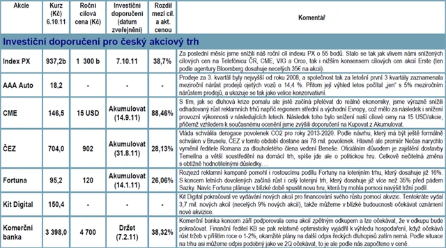ČS: Říjnová akciová strategie pro české akcie (9. 10. 2011)