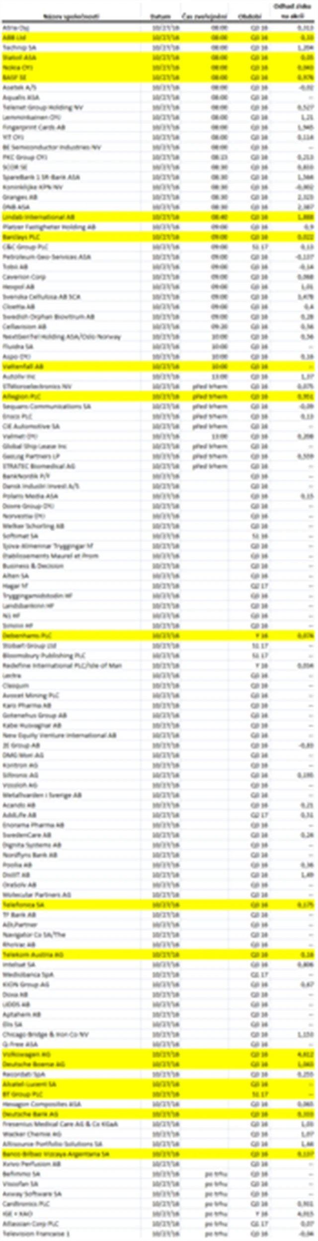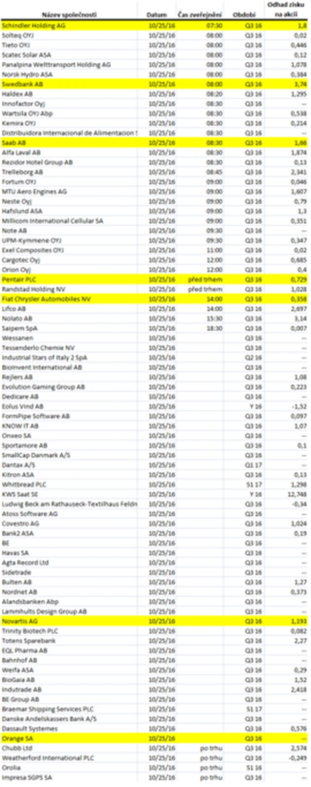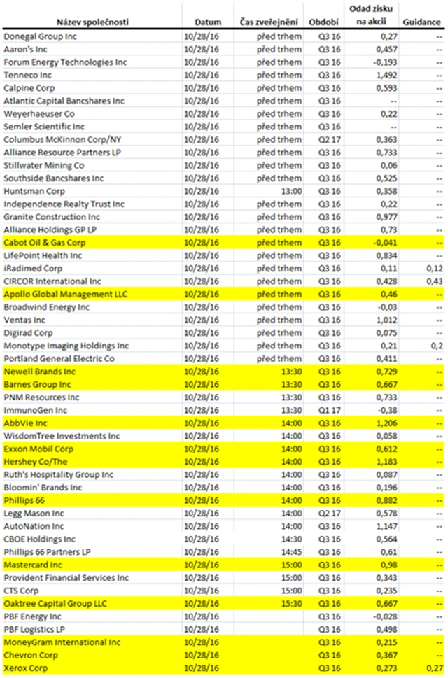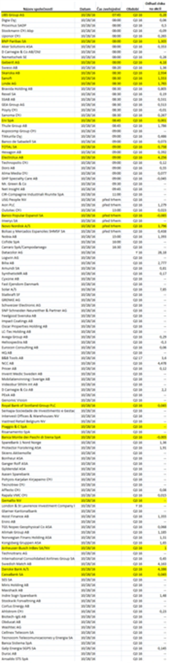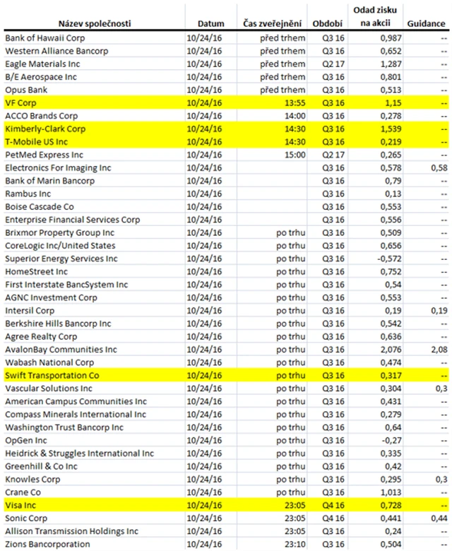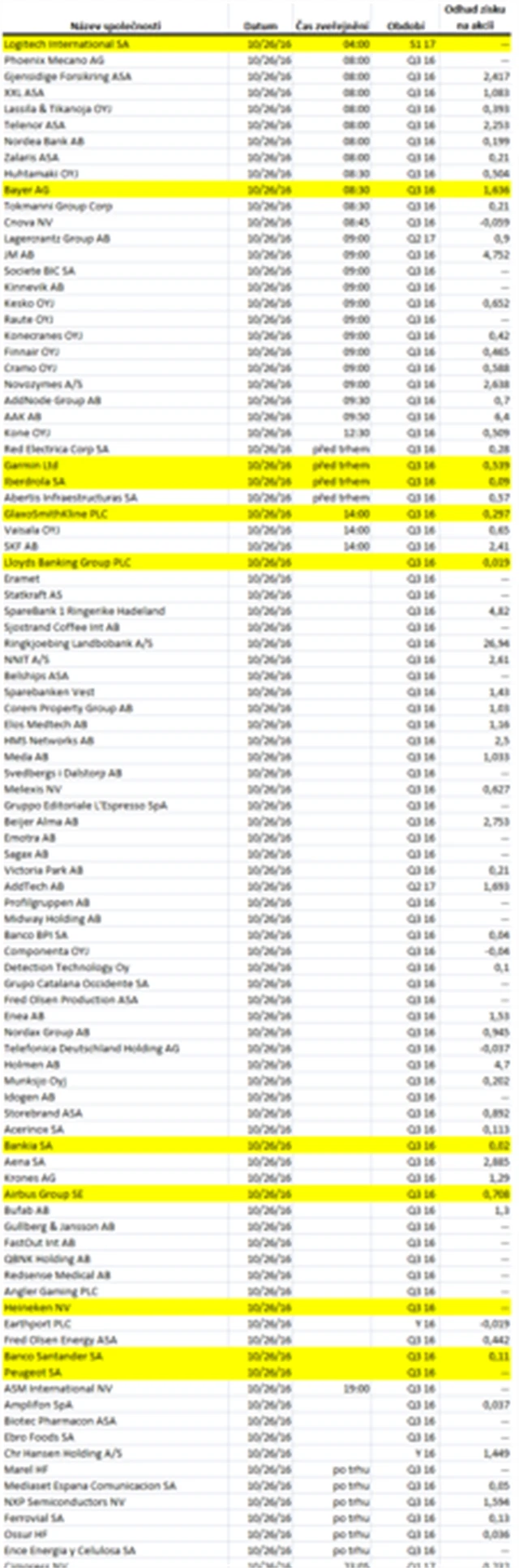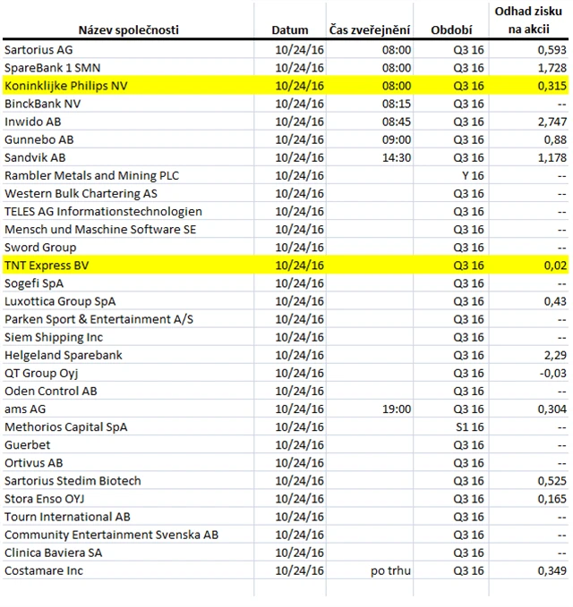 Očekávané výsledky světových firem v týdnu od 24. října (21. 10. 2016)