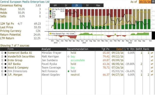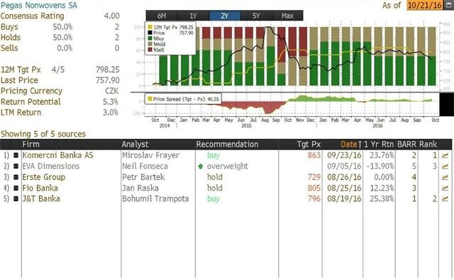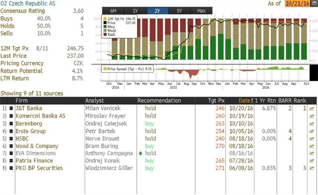 Jaký názor mají na akcie O2 Czech Republic, CME a Pegasu Nonwovens domácí a zahraniční analytici? Jaké jsou jejich dvanáctiměsíční cílové ceny a jak znějí jejich aktuální investiční doporučení? Nabízíme jejich přehled, jak jej k 21. 10. 2016 shromáždila agentura Bloomberg. (24. 10. 2016)