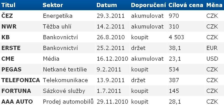 Investiční doporučení jsou jedním z důležitých vodítek pro drobné investory. Aktuální investiční doporučení na české akcie z dílny analytiků BH Securities, Cyrrusu a České spořitelny ukazuje, že se pohled na sílu jednotlivých firem a jejich emisí může výrazně lišit.