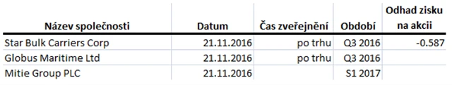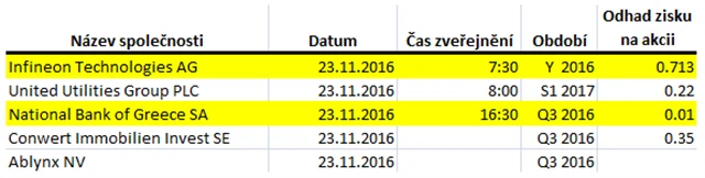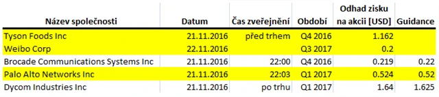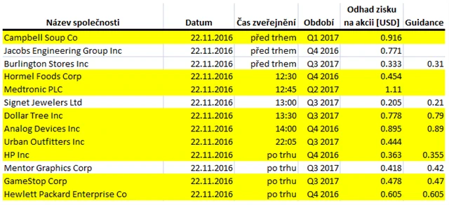 Očekávané výsledky světových firem v týdnu od 21. listopadu (18. 11. 2016)