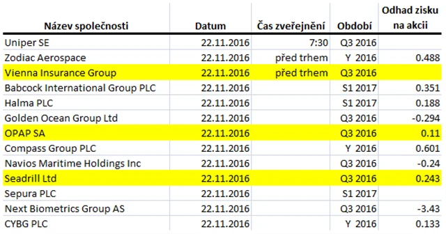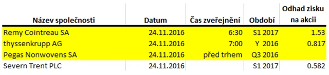 Poznámka: Odhady analytiků jsou aktuální k 18. 11. 2016.