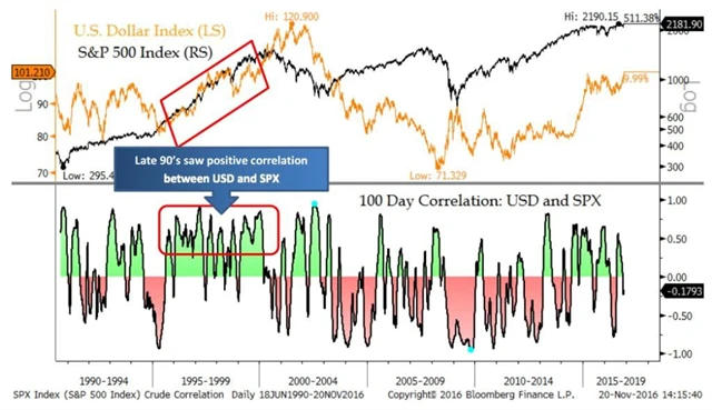 Posilující americký dolar neznamená nebezpečí pro akciový trh. Ano, kurzy měn ovlivňují ziskovost firem v těch kterých měnách vykazovanou, to ale nelze považovat za důkaz toho, že v době, kdy se daří americkému dolaru, nedaří se akciím amerických firem (a obecně pro kteroukoli měnu a příslušnou zemi).