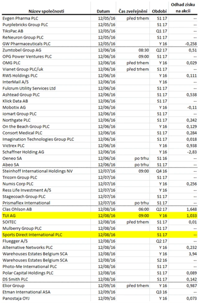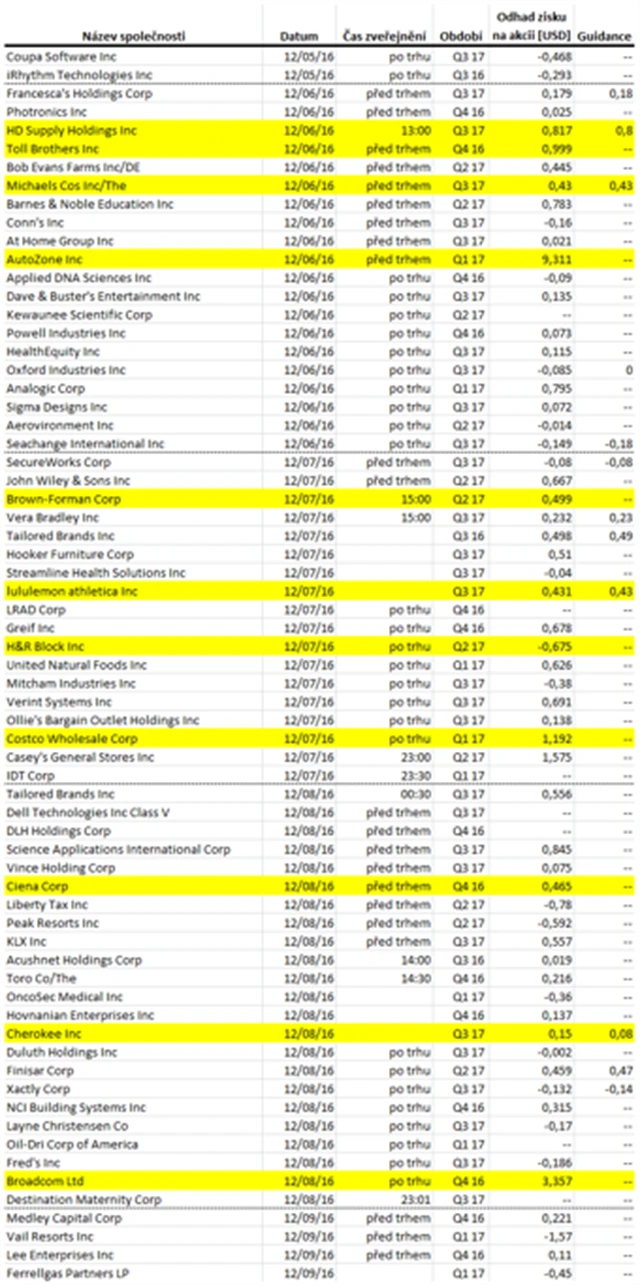 Očekávané výsledky světových firem v týdnu od 5. prosince (2. 12. 2016)