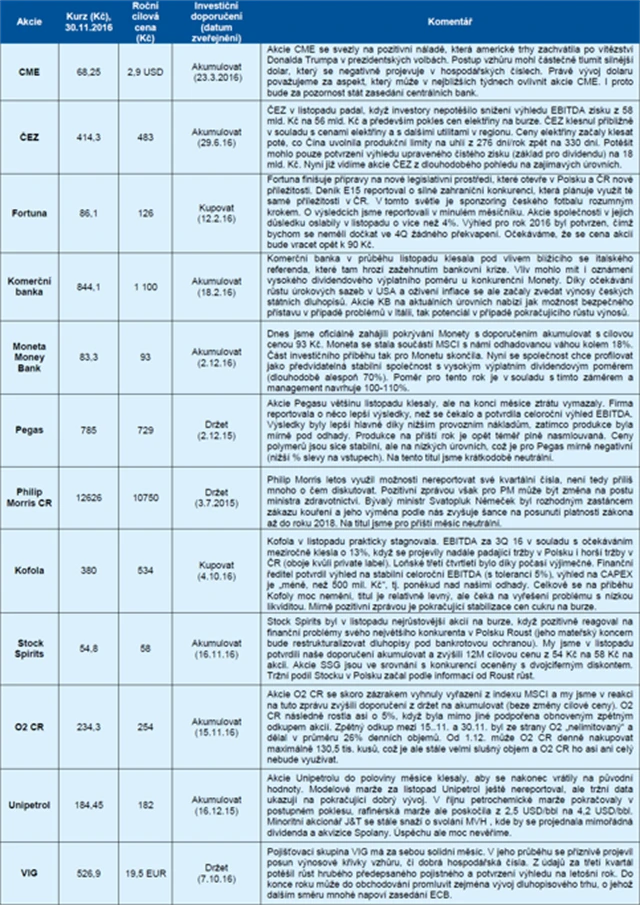 ČS: Prosincová strategie pro české akcie (5. 12. 2016)