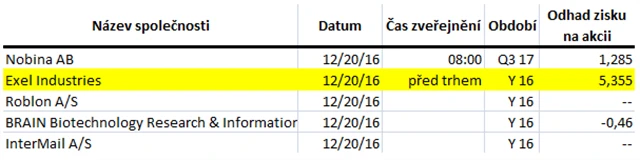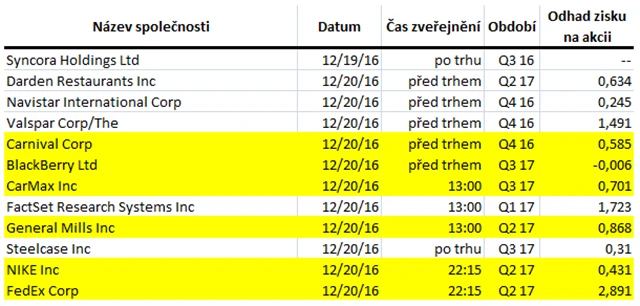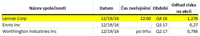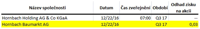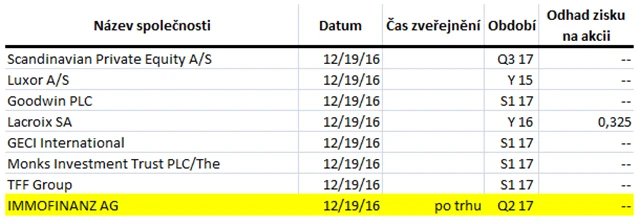 Poznámka: Odhady analytiků jsou aktuální k 15. 12. 2016.
