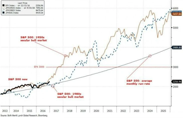Stephen Suttmeier, technický analytik z Bank of America Merrill Lynch, ve své poznámce klientům naznačuje, že akciové trhy mají před sebou sekulární býčí trh ve stylu 50. let. A ten stál skutečně za to. Poznamenejme jen na úvod, že stejný analytik věštil americkému trhu na konci září 2016 hluboký pokles. To se stane.