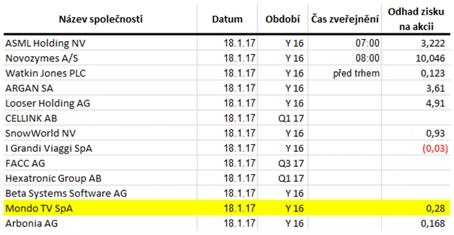 Poznámka: Odhady analytiků jsou aktuální k 13. 1. 2017.