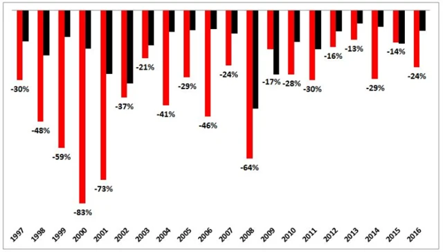Pro investory ale nejsou akcie Amazonu tak docela měkký chlebíček. Od IPO v roce 1997 totiž v rámci jednotlivých kalendářních let předvádějí velkou volatilitu. Pokud ale někdo vydržel a zvládl v průběhu let držet akcie Amazonu po několik let, nejspíše nelitoval.