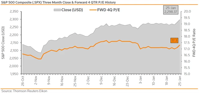 Které světové firmy představí výsledky hospodaření za uplynulý kvartál v týdnu od 30. ledna a jaké zisky v rámci indexu S&P 500 a od jednotlivých společností očekávají analytici oslovení agenturami Thomson Reuters a Bloomberg? (27. 1. 2017)