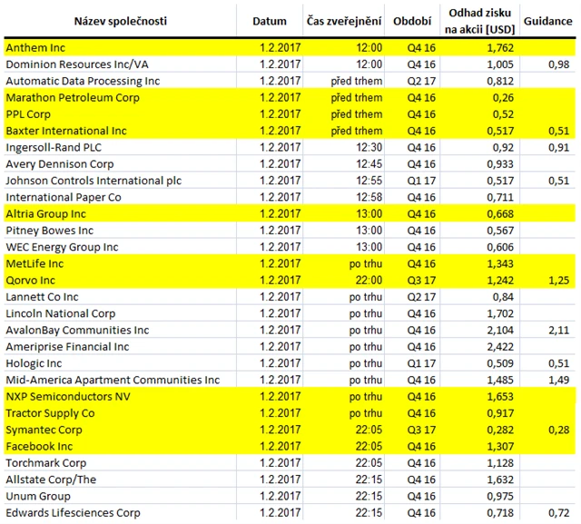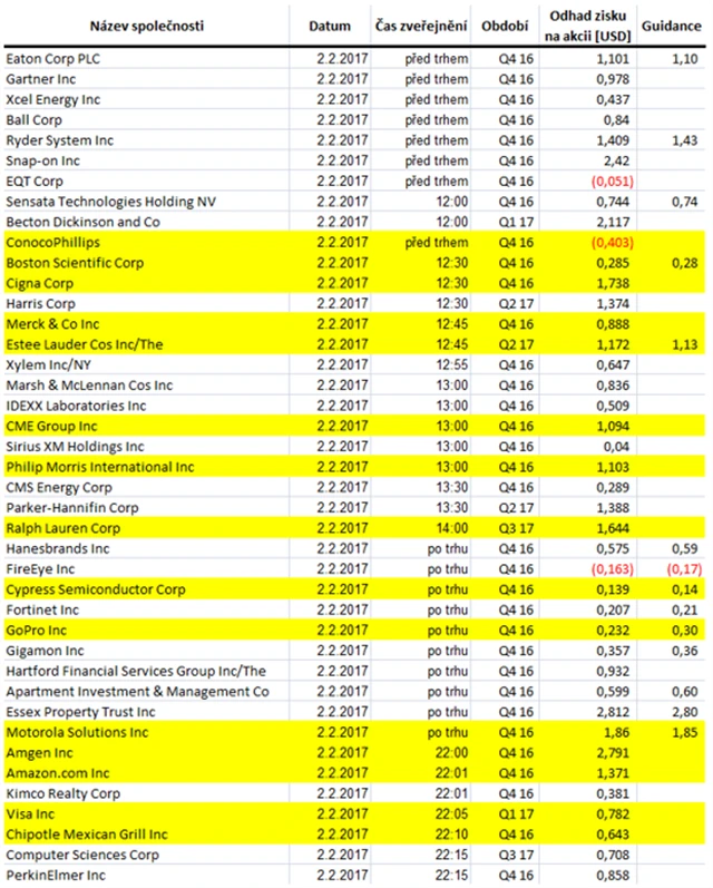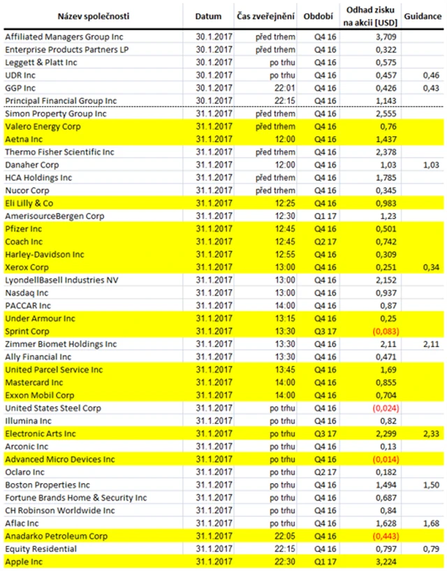 Poznámka: Odhady analytiků jsou aktuální k 27. 1. 2017.