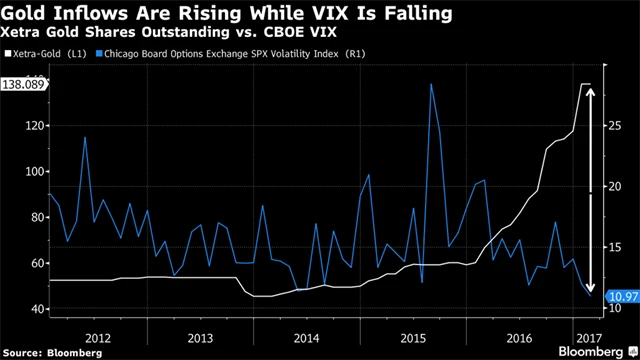 O zlatu si můžete myslet cokoli, je ale pravda, že žlutý kov na investory v době zvýšené nejistoty působí jako magnet. Loni se poptávka po něm prostřednictvím burzovně obchodovaných fondů (ETF) vyhoupla na více než 530 tun. A tak zatímco akcie posunují historická maxima, na trh se zlatem proudí miliardy dolarů, které mají investorům zajistit ochranu před propadem burz.