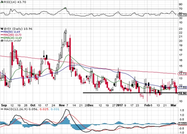 Index volatility VIX vysílá pro akcie nadále býčí signál. Na začátku týdne se sice posunul na 13, ale po Trumpově vystoupení se vrátil k minimům.