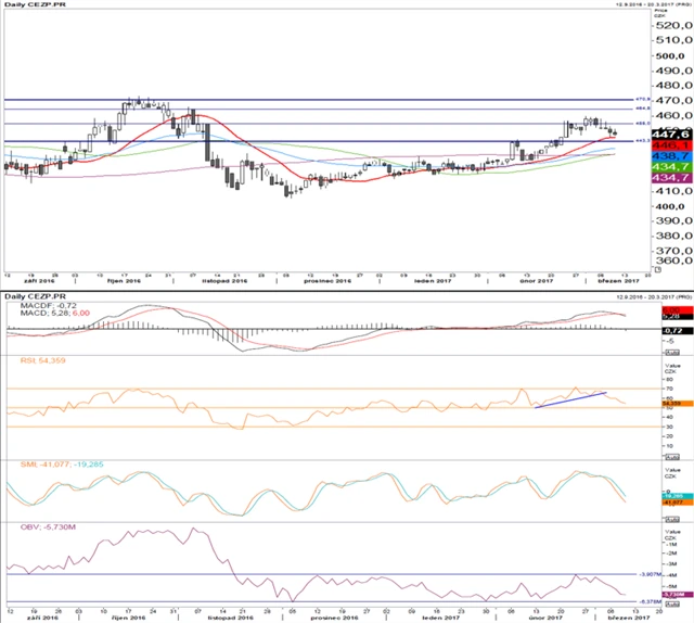 ČEZ, Komerční banka a MONETA Money Bank: České blue chips pohledem technické analýzy (10. 3. 2017)