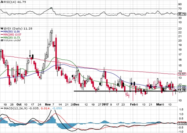 Index volatility VIX je nadále na minimech, pásmo 11-13 prakticky neopustil od začátku roku. Pro americké akcie tak nadále vysílá optimistický signál.