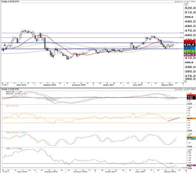 ČEZ, Komerční banka a MONETA Money Bank: České blue chips pohledem technické analýzy (24. 3. 2017)