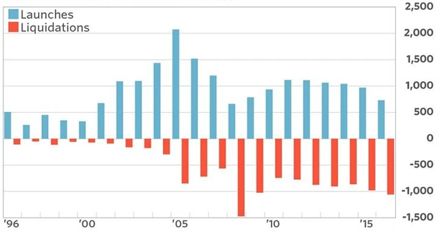Jen v roce 2016 tak z trhu zmizelo 1 057 hedgeových fondů, nejvíce od roku 2009 (zároveň vzniklo 729 nových hedgeových fondů, naopak nejméně od roku 2009). Celkový počet hedgeových fondů ke konci roku 2016, včetně fondů fondů, tak dosahoval 9 893.