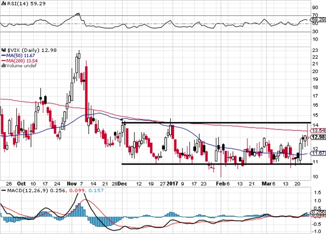 Index volatility VIX drží pásmo 11-13. Případné prolomení výše bude signálem narůstajícího nebezpečí pro akciové býky.