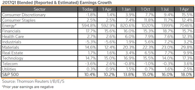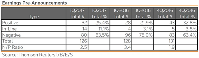 Jak se vyvíjejí odhady růstu či poklesu zisků za 1Q2017?